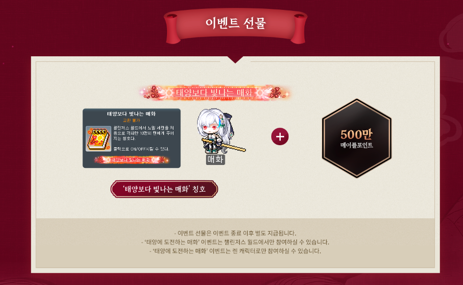 🎁 태양에 도전하는 매화 이벤트 보상