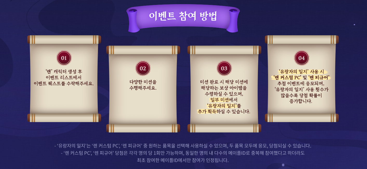 *유랑자의 여행기는 렌 캐릭터로만 참여하실 수 있습니다.