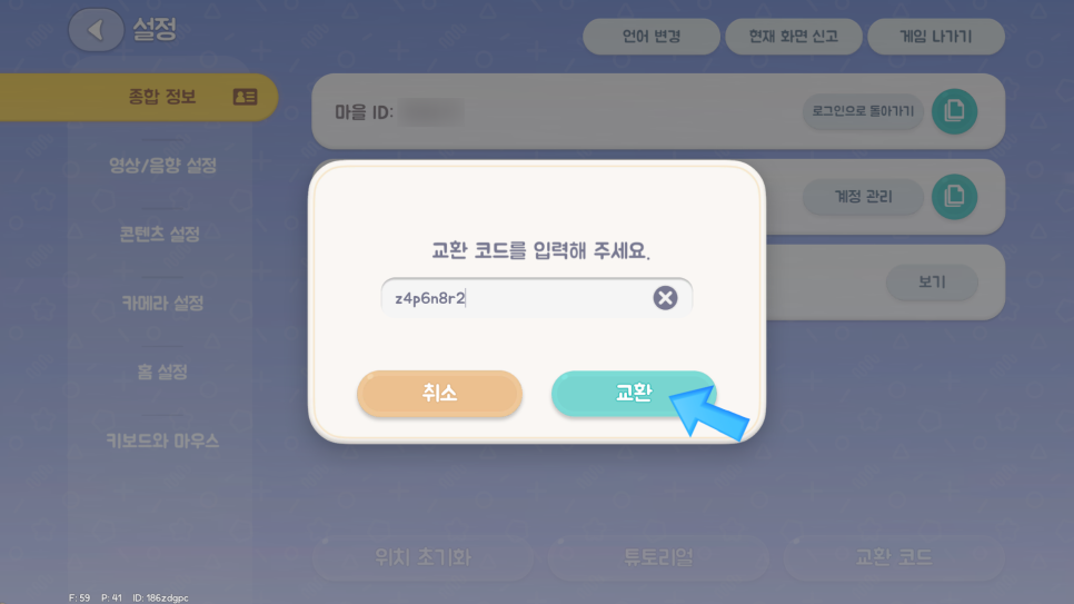 우측 하단 교환 코드 클릭