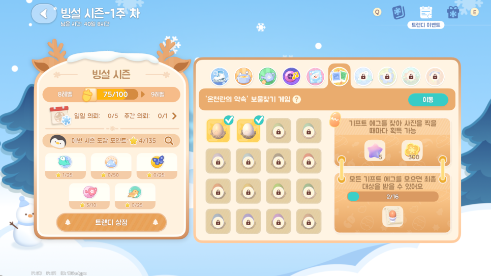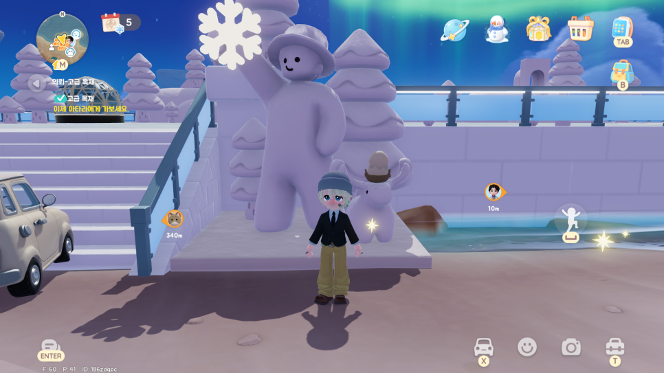 먼저 오른쪽 상단 위 눈사람 클릭해보면!
