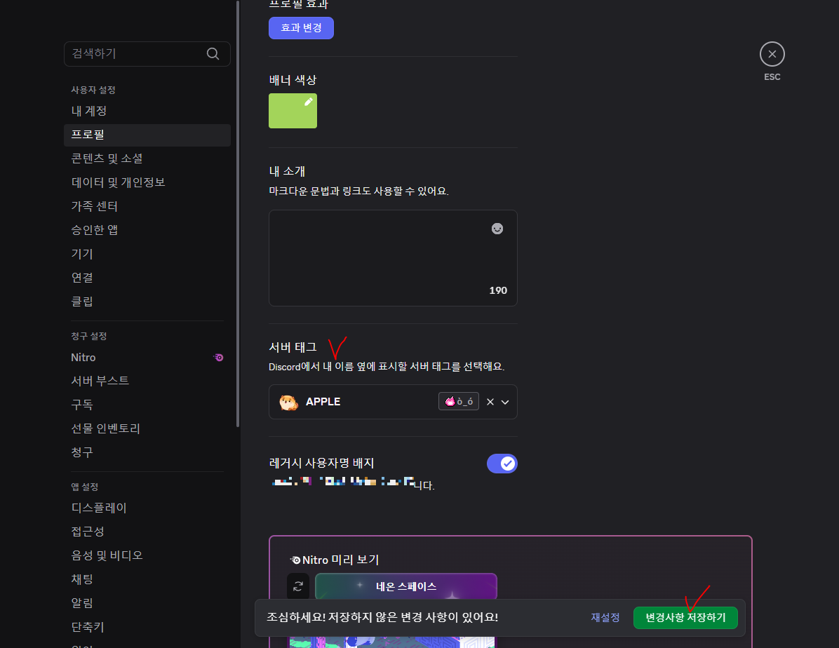 왼쪽 하단 내 프로필 설정으로 들어갑니다!